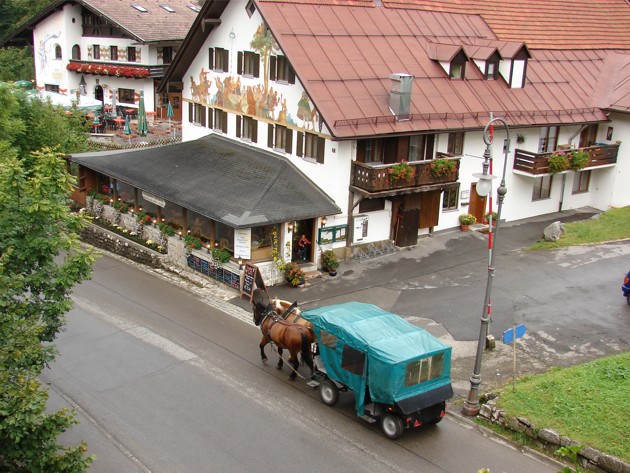 The horse-drawn carriages take people up to see both Hohenschwangau