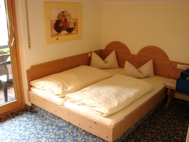 at a German or Swiss hotel. There are no sheets, only down-filled coverlets.